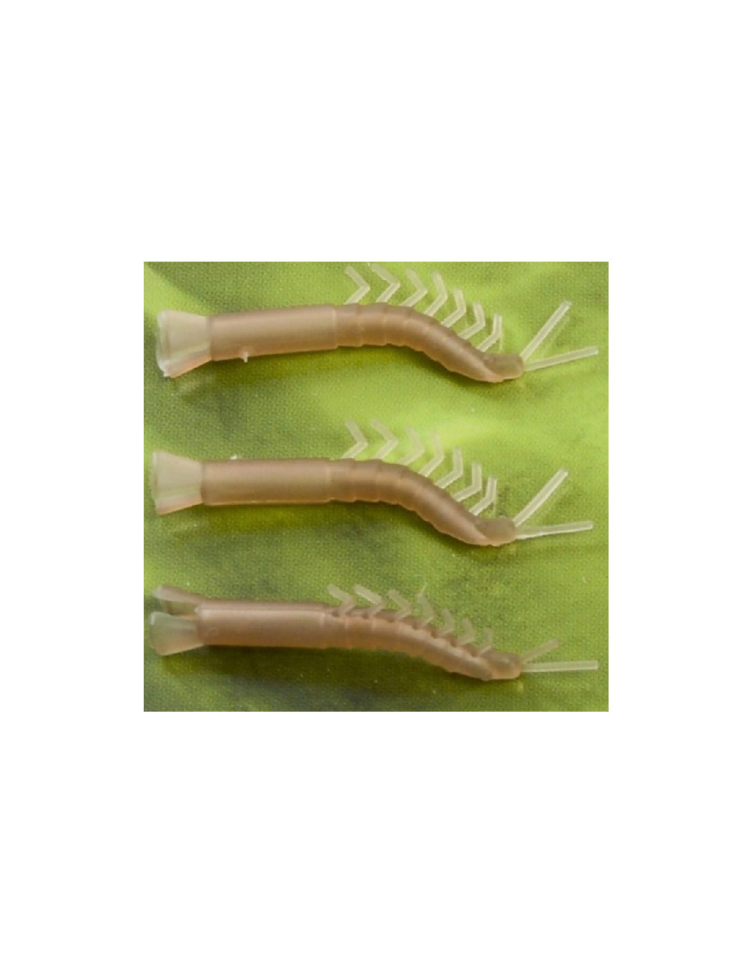 Los posicionadores rígidos para ganchos en forma de camarón de agua dulce, que son una alternativa mucho más rápida de usar que los tubos termocontraíbles estándar. Gracias a su construcción rígida, es posible darle una forma ligeramente diferente alineador mediante la flexión o doblado apropiado, que permanecerá en la posición asignada. La forma de camarón es un atractivo adicional para el pez. El posicionador hace que el gancho gire mucho más rápido en la boca del pez, facilitando el enganche seguro.