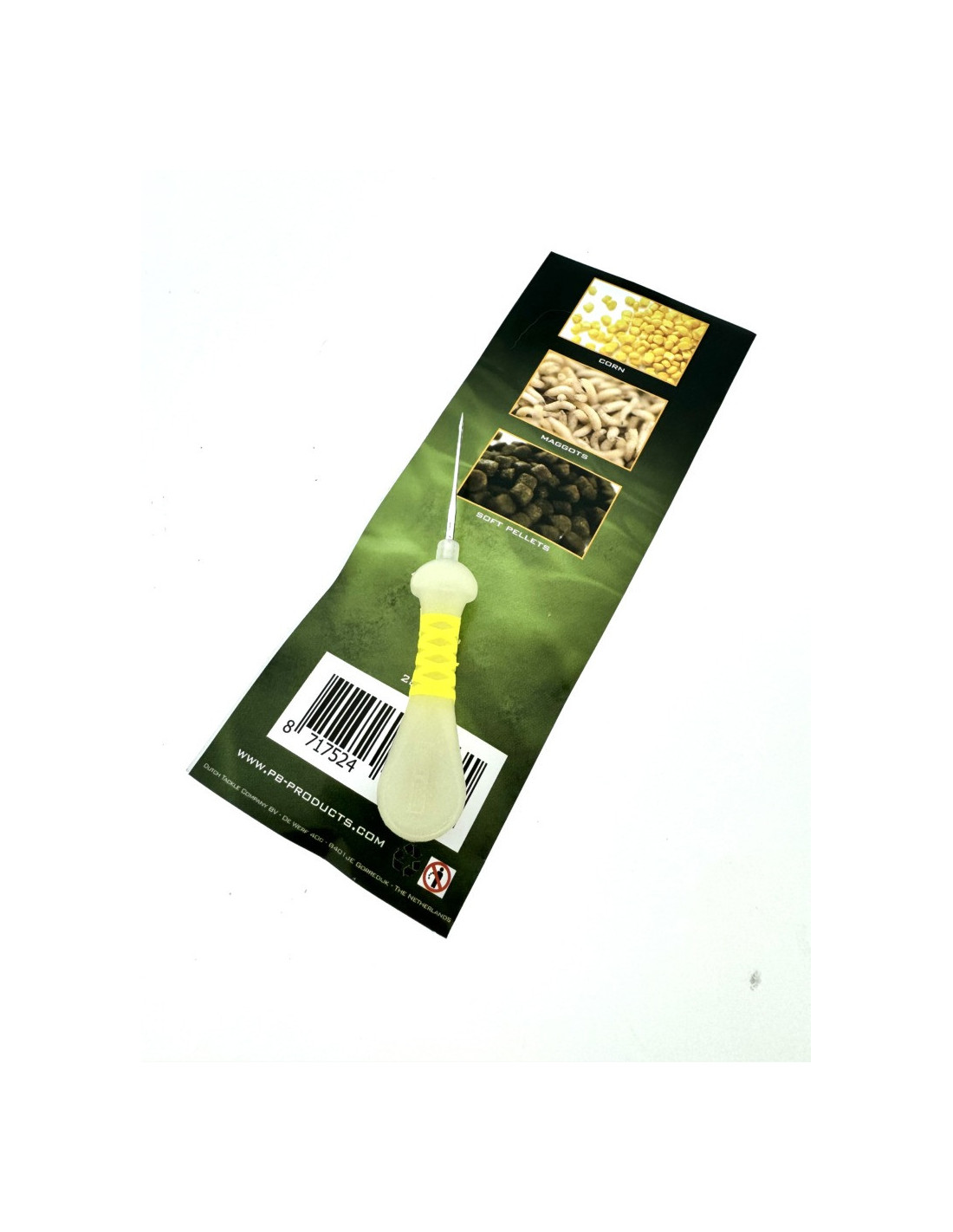 Una aguja muy fina, ideal para atrapar gusanos. ¡También es muy práctica para maíz y mini pellets blandos! Por supuesto, cuenta con un práctico mango que brilla en la oscuridad. ¡Imprescindible!