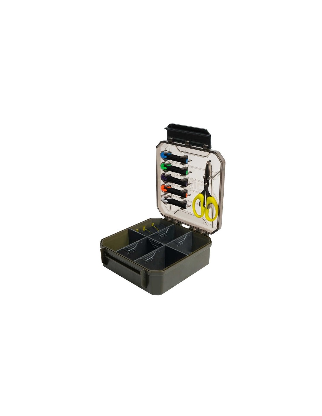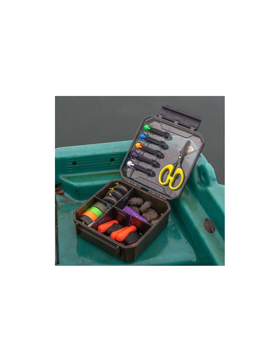 CARACTERÍSTICAS Una caja versátil y compacta para guardar lo esencial, ya sea que estés en el barco o en la orilla, para ayudarte a pescar de manera más eficiente. Herramientas y tijeras Avid incluidas. Múltiples divisores para ayudarte a configurar la caja exactamente como quieras. Perfecto para guardar minas de repuesto, líderes, bolsas de PVA, etc. 3 carretes de EVA para mantener los líderes o aparejos listos. Dimensiones (cm) 18 x 18 x 8