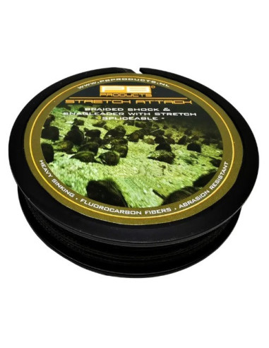 Al pescar con línea principal trenzada, no solo se trata de atar secciones terminales resistentes a la abrasión; también se necesita elasticidad para absorber los impactos durante la perforación. Hasta hace poco, se dependía de una línea delantera de nailon porque los bajos trenzados no tienen elasticidad. PB Products ha desarrollado una solución: ¡Stretch Attack! Este innovador material para bajos trenzados combina las ventajas de una línea delantera y un bajo. Es elástico, empalmable, resistente a la abrasión y camuflado, lo que proporciona el equilibrio perfecto para su aparejo.
