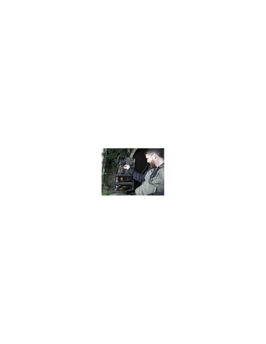 Los bolsillos inferiores están terminados en un plástico transparente ahumado para que encontrar exactamente lo que necesita sea rápido y fácil, mientras que los bolsillos superiores están terminados en malla elástica, lo que los hace ideales para almacenar materiales de enlace de gancho, recargas de PVA y pequeñas cajas de accesorios.