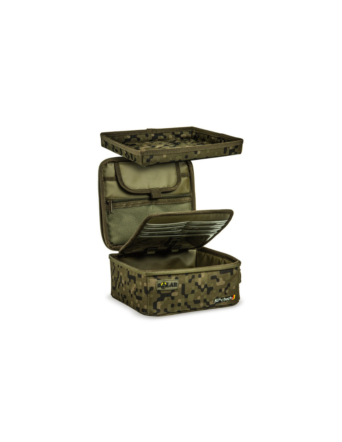 La estación de montaje SP C-Tech se basa en nuestra popular Multi-Pouch. Sus numerosos bolsillos, en una solapa divisoria, ofrecen un almacenamiento práctico y ordenado para todos tus aparejos y herramientas; incluye bolsillos a medida para accesorios, anzuelos, agujas y un compartimento principal para herramientas, etc. La bandeja para aparejos, encajada en la tapa, es la estación perfecta para atar aparejos. Cuenta con laterales amurallados y zonas magnéticas, para que no pierdas anzuelos ni piezas de aparejos.
