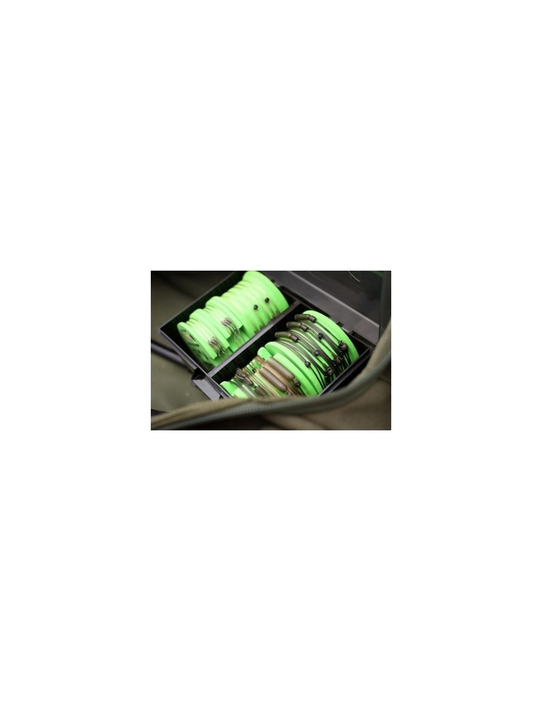 Además de almacenar zigs, también es perfecto para líderes preajustados, como para la pesca con chod, con el número que puede caber en él dependiendo de los componentes del aparejo en el líder.
