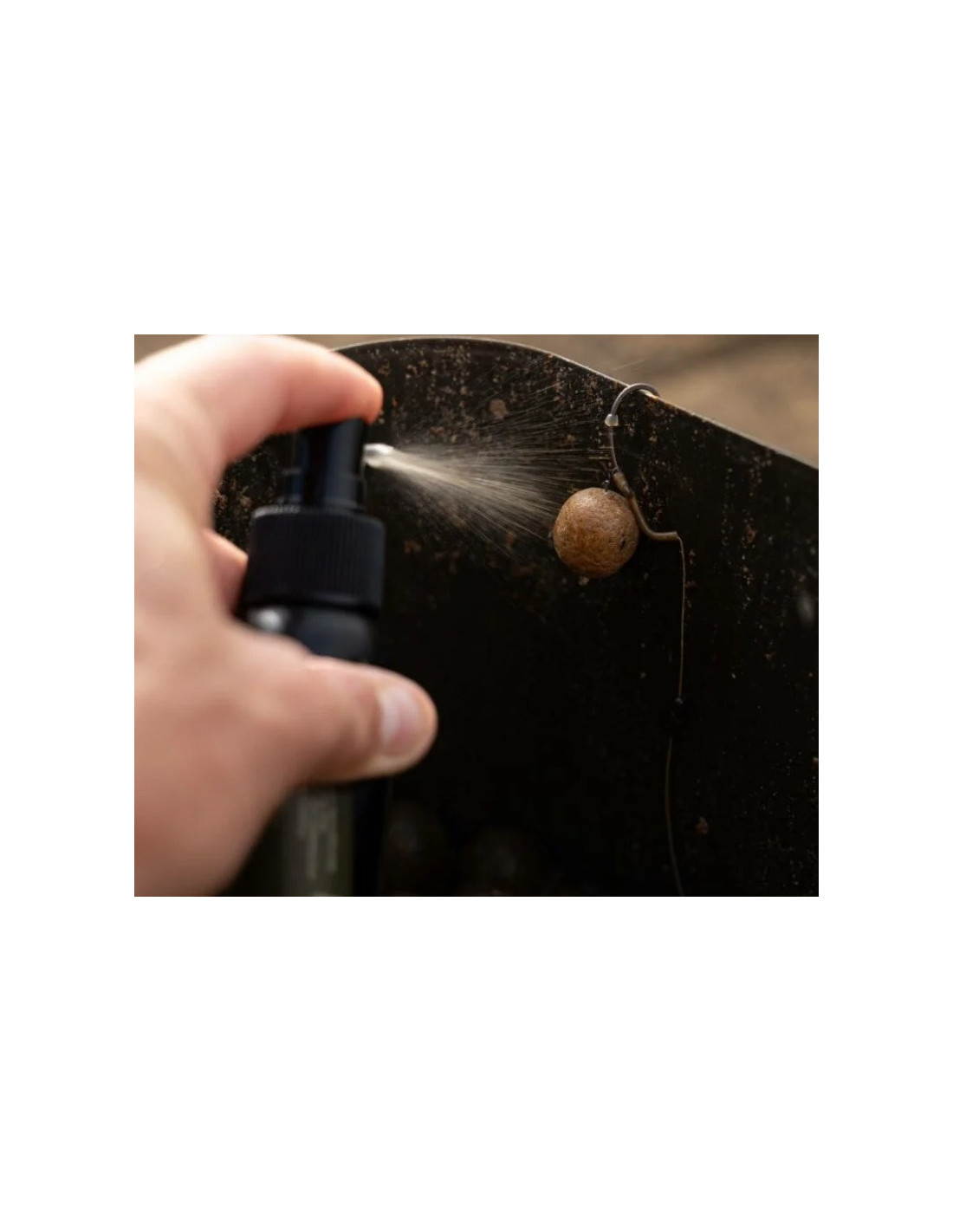 Basta con una o dos pulverizaciones en un bote de cebos. Agitar y dejar secar un rato.