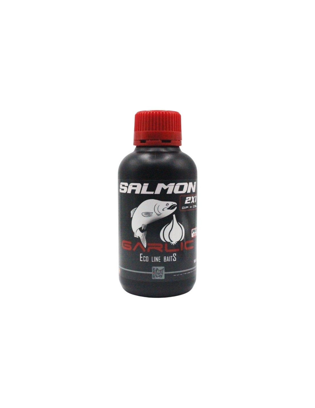Bote de Líquido de la marca Trybion, gama Ecoline, sabor salmon garlic, especial para la pesca de carpfishing.