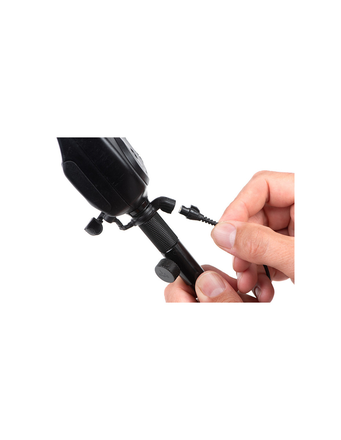 Conexión de cable trenzado negro de 6 pulgadas con conexión de bayoneta al palo de hockey.