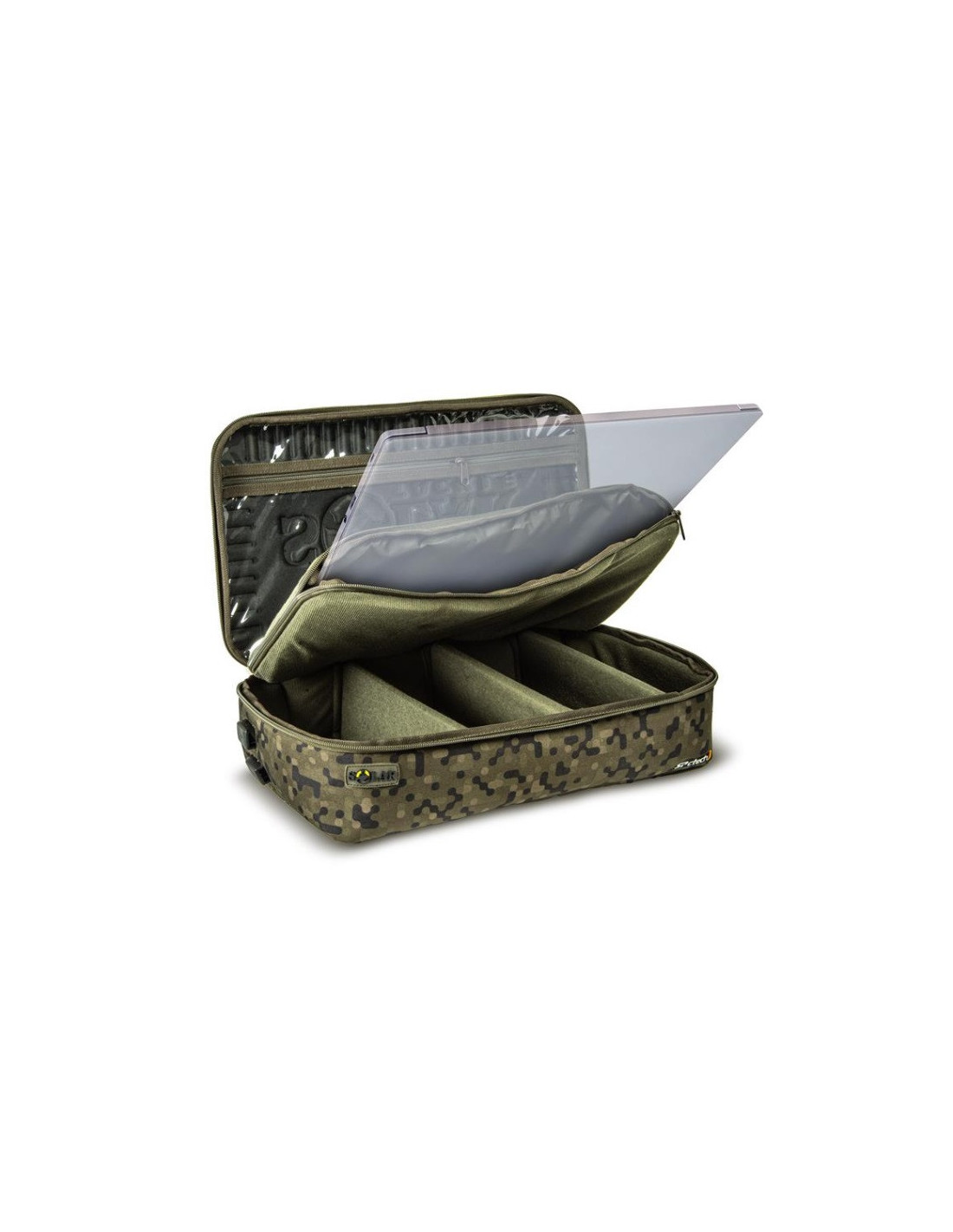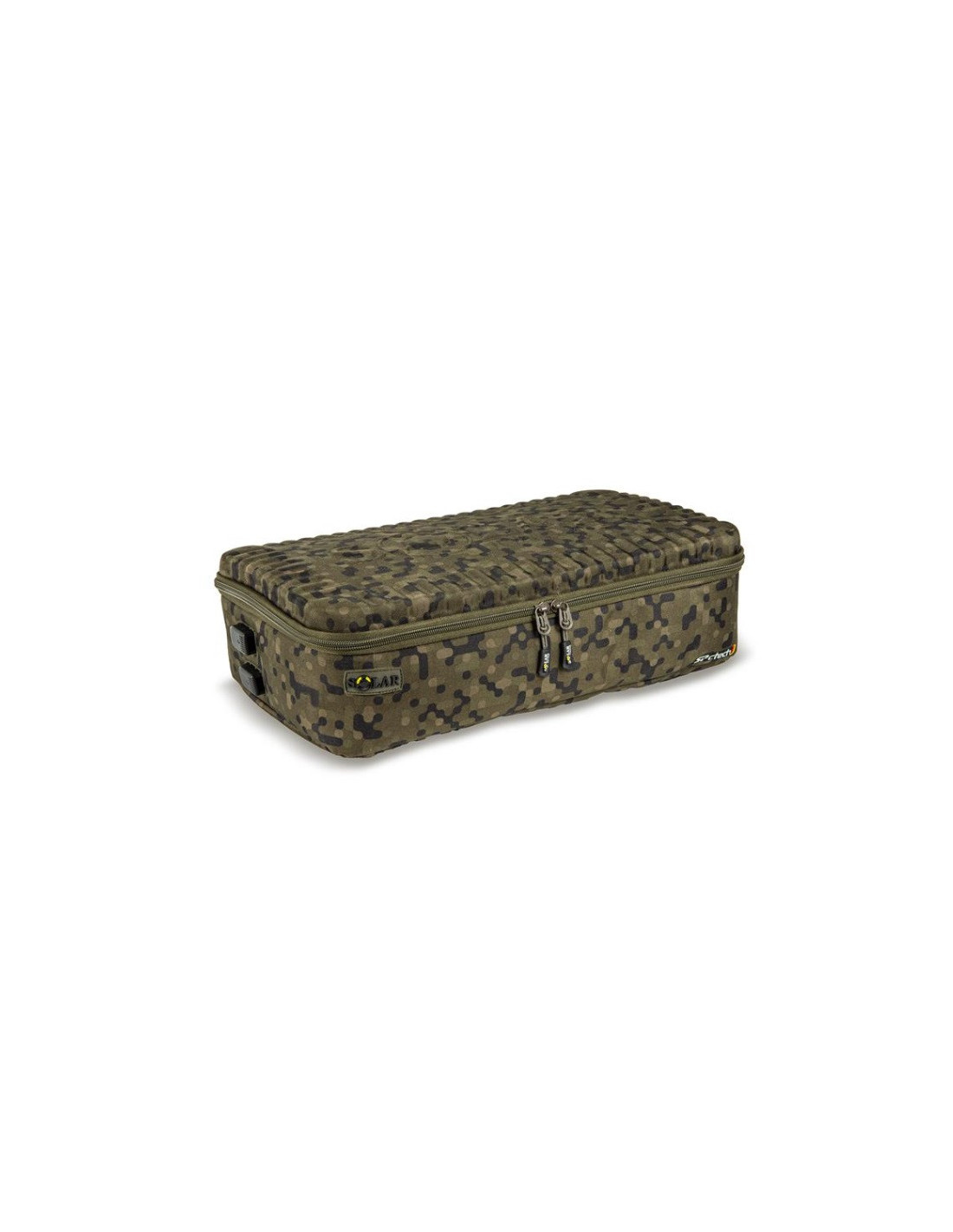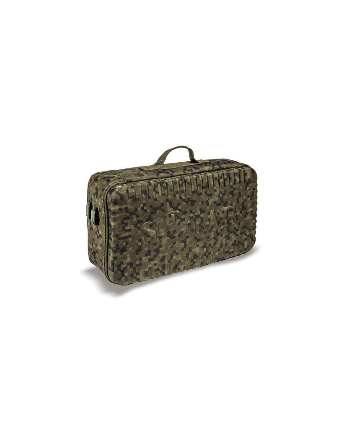 El maletín está revestido con SolarCam, el camuflaje digital de Solar, con un aspecto práctico y elegante.