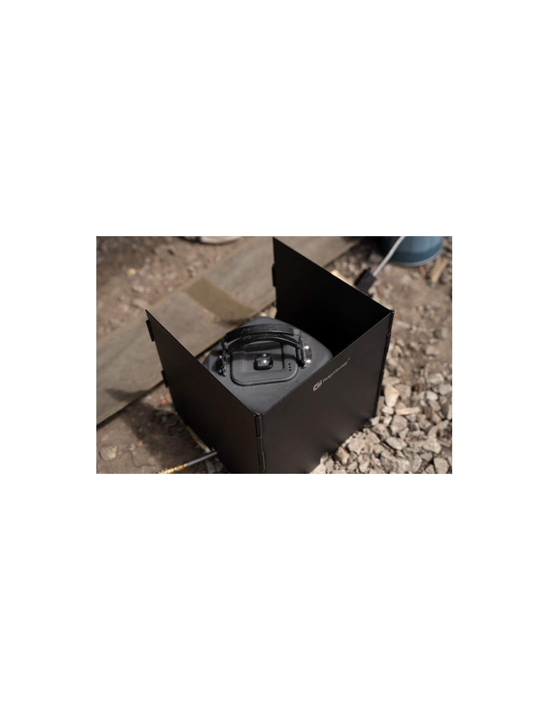 El Ridgemonkey Quad Connect Parabrisas protege su estufa de las influencias externas. Tanto si quieres evitar que el viento apague las llamas, como si quieres que la comida se enfríe demasiado rápido o simplemente quieres evitar que nada se vuele: ¡el Quad Connect Parabrisas es la solución perfecta!