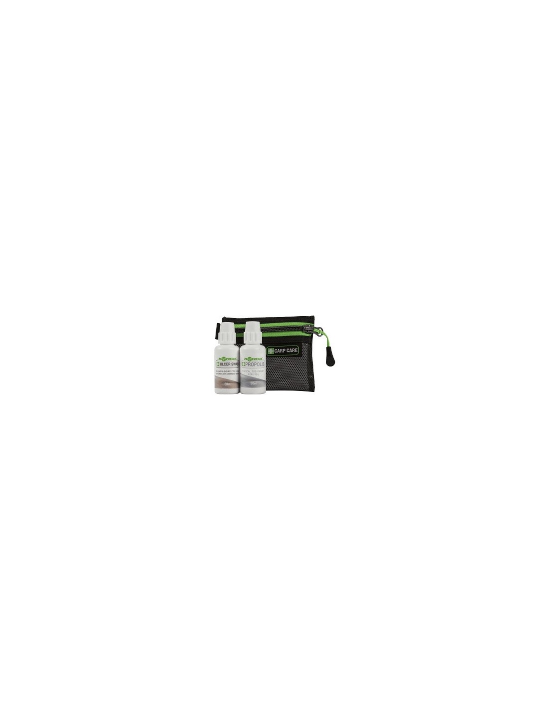 El "Kit para el cuidado de la carpa" es un elemento imprescindible para cualquier pescador y fue diseñado por Thinking Anglers. Como resultado, Korda lo ha asumido en su rango para garantizar que se distribuya en cada caja de aparejos de pescadores. Se completa con dos botellas (BOCA Y CUERPO). La botella de "Boca" cubre cualquier corte o daño en esa área con la botella de "Cuerpo" que resulta esencial para tratar, llagas, cortes y otros daños visibles.
