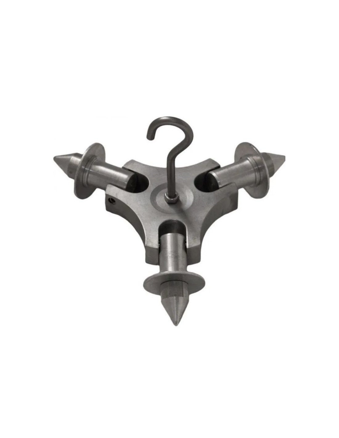 El adaptador de trípode conecta las tres patas y forma un trípode. Las patas son ajustables individualmente. Cuando se alcanza el ángulo de ataque requerido, cada varilla se presiona brevemente contra el suelo. Cuando todos los postes están alineados y fijados en el suelo, es posible colgar más de 100 kg en el adaptador de trípode. El sistema es extremadamente estable una vez instalado. El trípode se puede utilizar para pesar pescado, cocinar gulash o asar a la parrilla sobre el fuego.