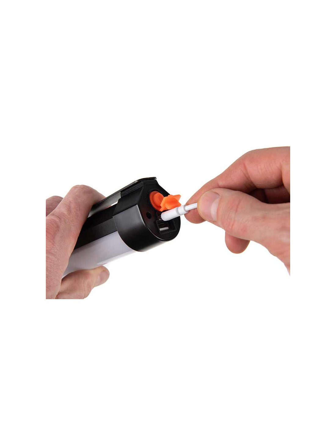 Puerto de carga USB-C y salida USB para usar como batería externa de emergencia.