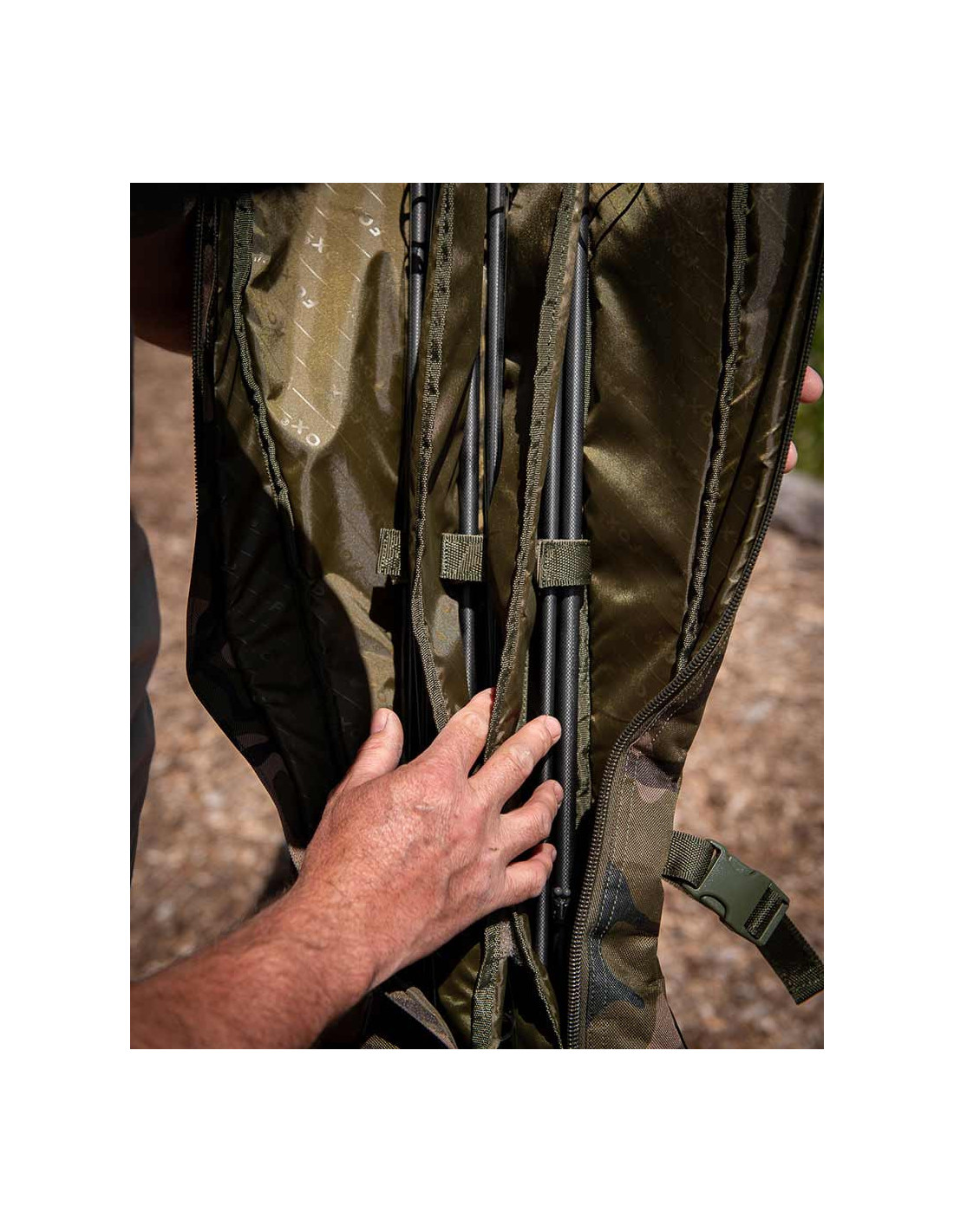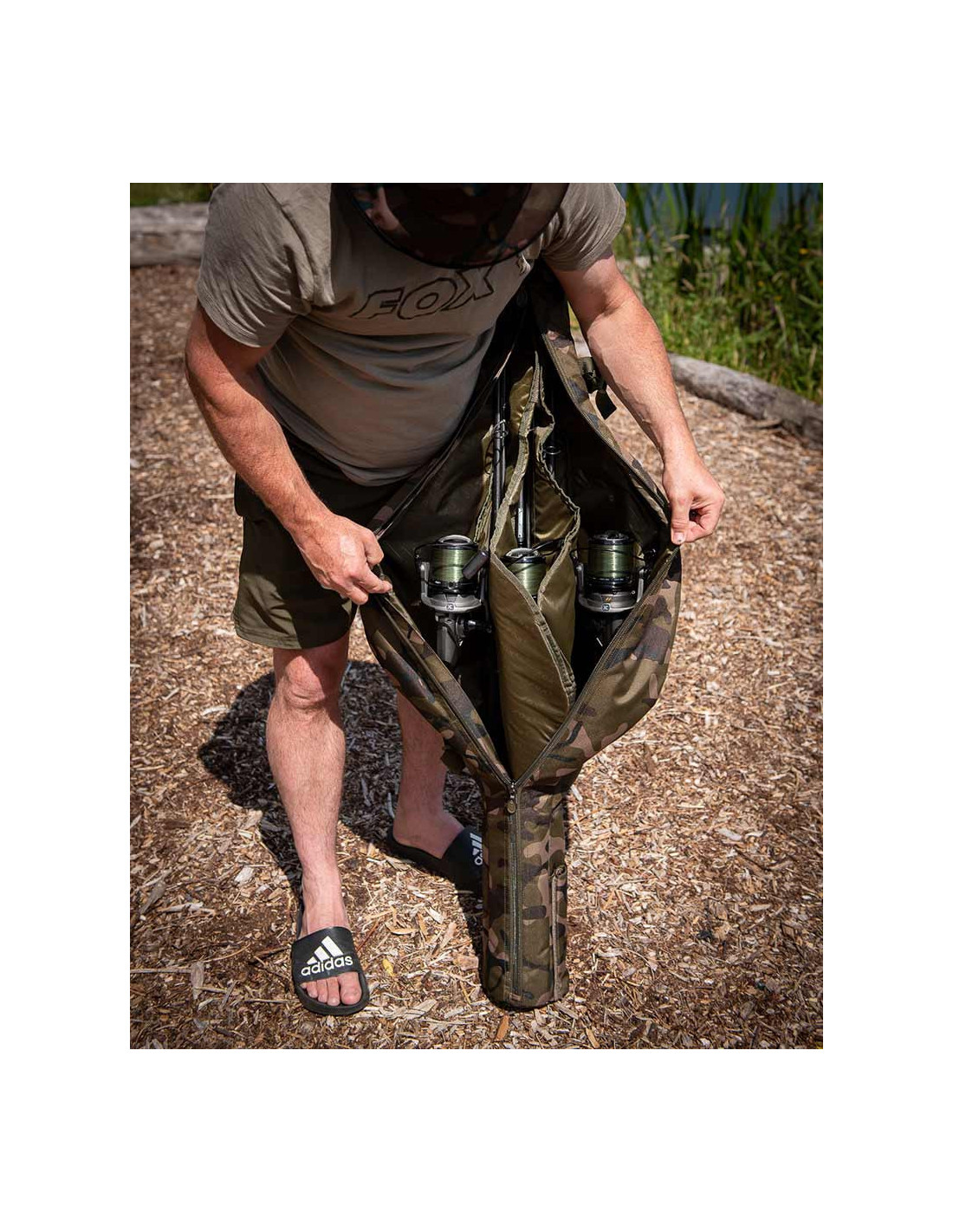 El velcro del bolsillo se ajusta al ras de la funda de la caña cuando no se usa