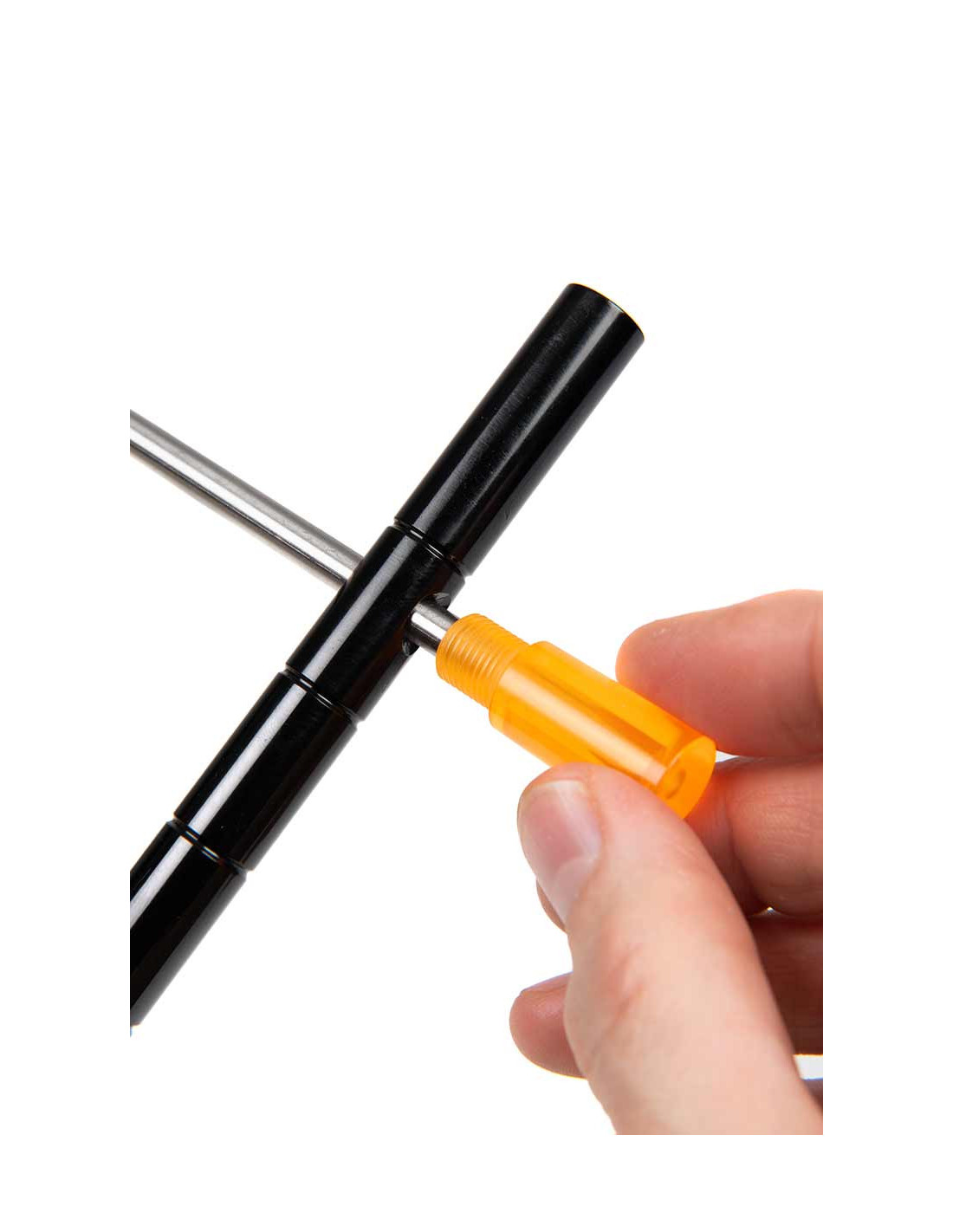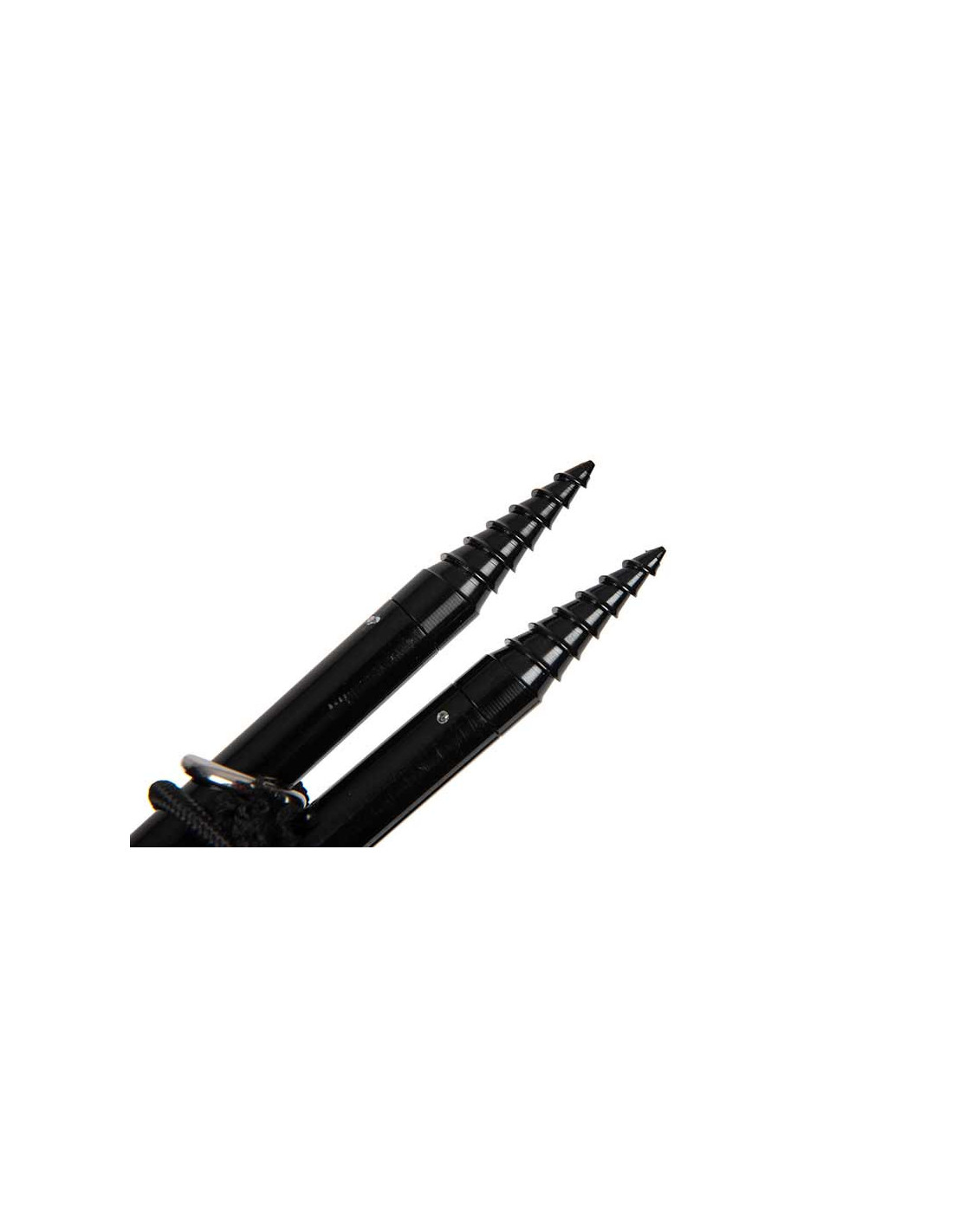 Barra en T de acero inoxidable integrada en los palos para un almacenamiento compacto.