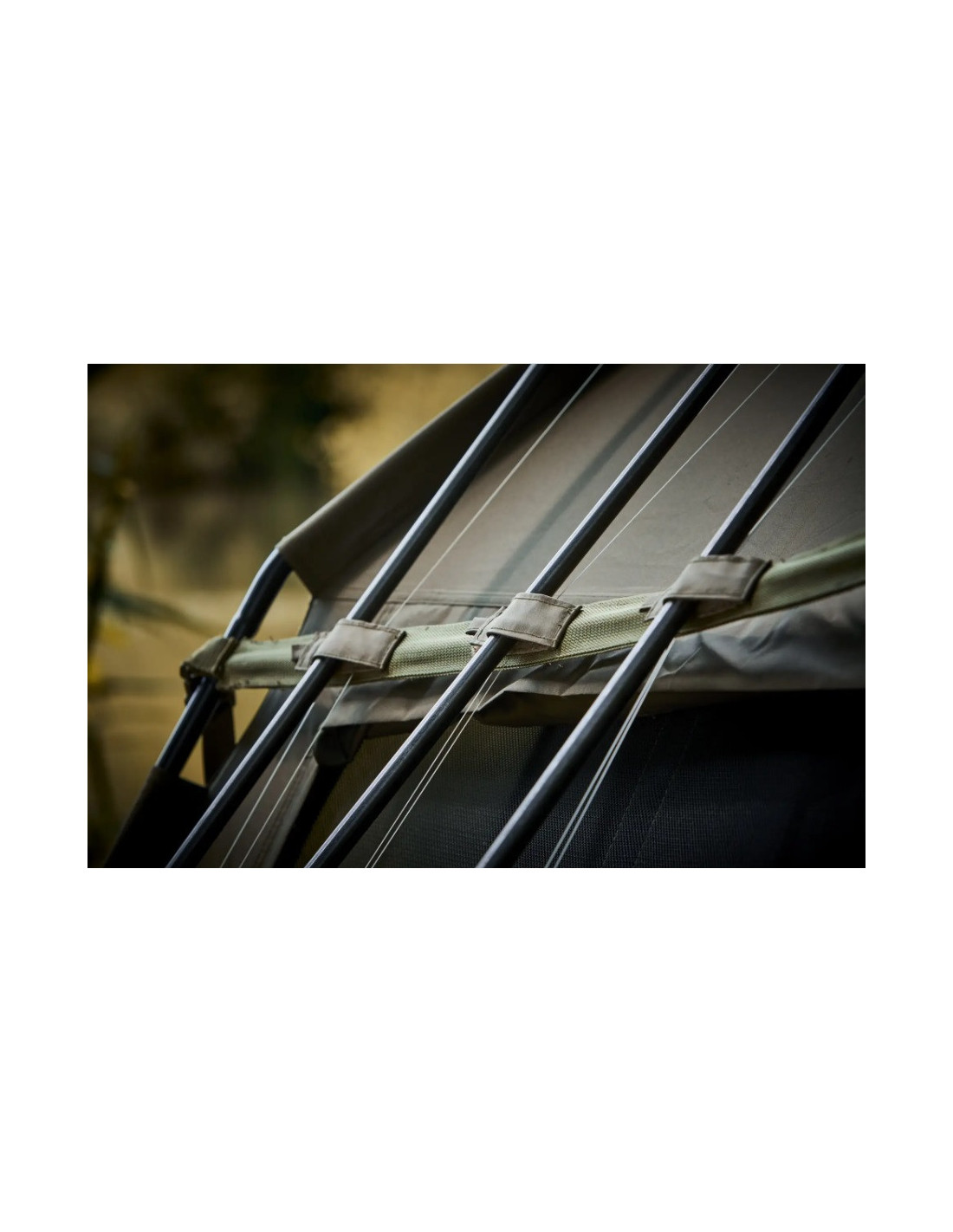 Correa de la empresa Trakker Products que permite apoyar de manera segura cañas adicionales a la carpa. ¡Se acabó el apoyo de las cañas en arbustos y árboles!