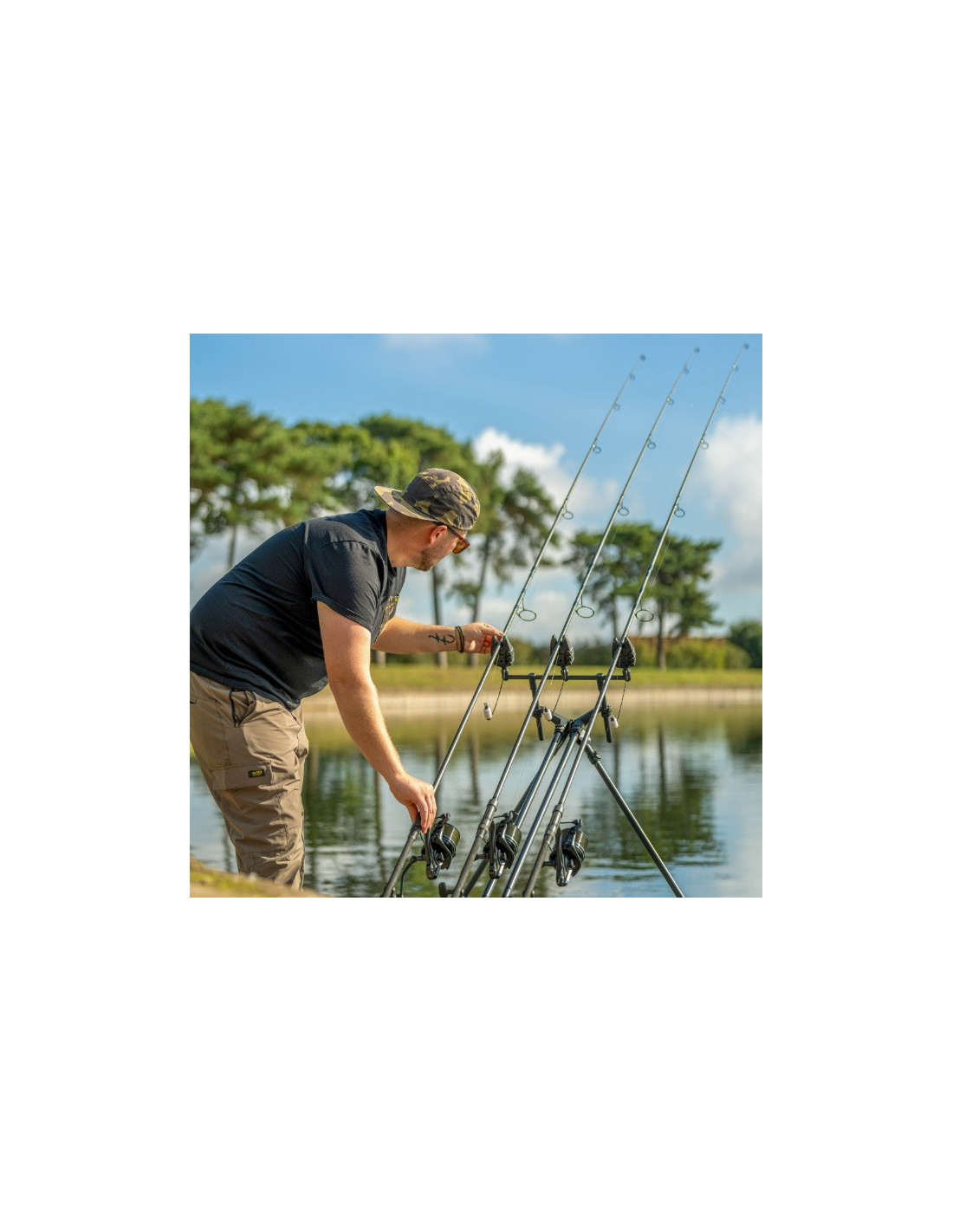 Mecanismo de patas de 4 direccionables, que le permite personalizar la posición de las punteras de sus cañas.