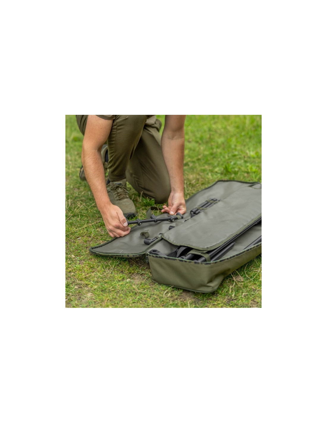 Se suministra con una bolsa de transporte personalizada con detalles de cremallera de camuflaje.