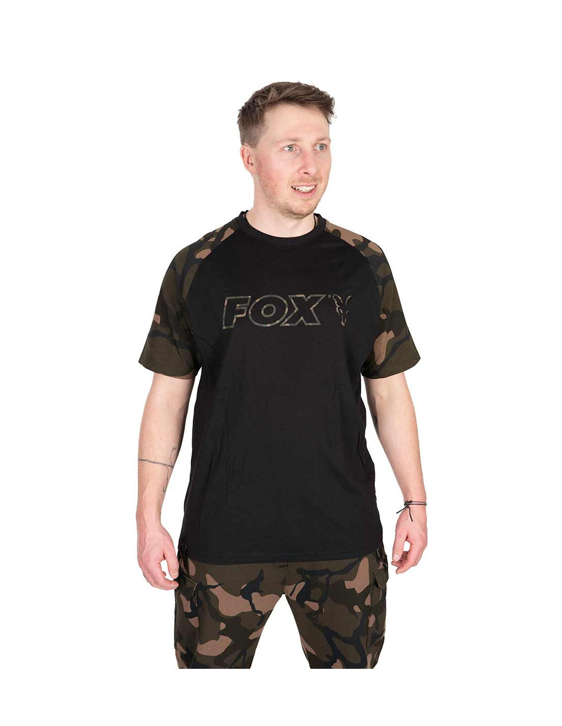 Gran estampado del contorno de camuflaje de Fox en el pecho.