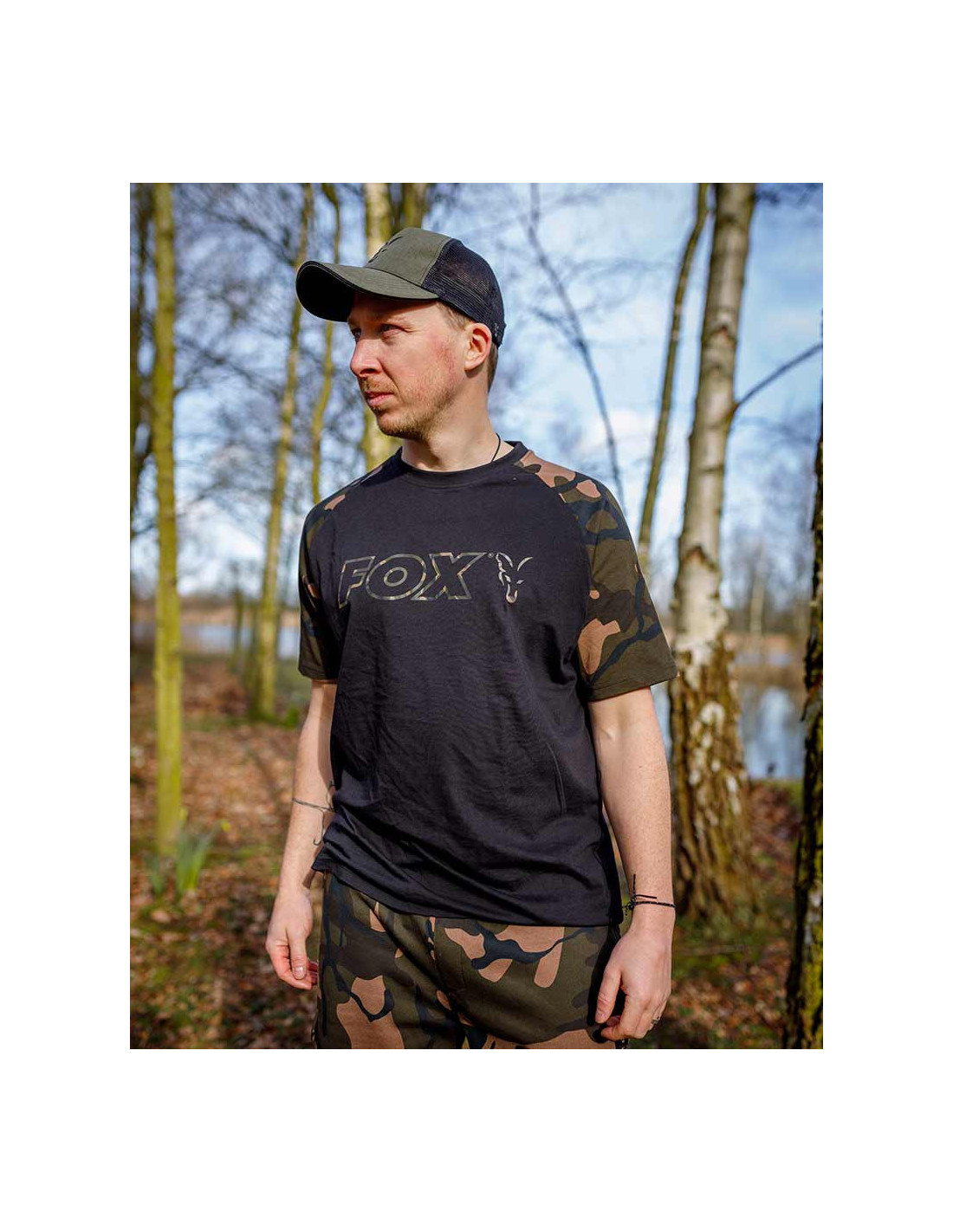 Gran estampado del contorno de camuflaje de Fox en el pecho.