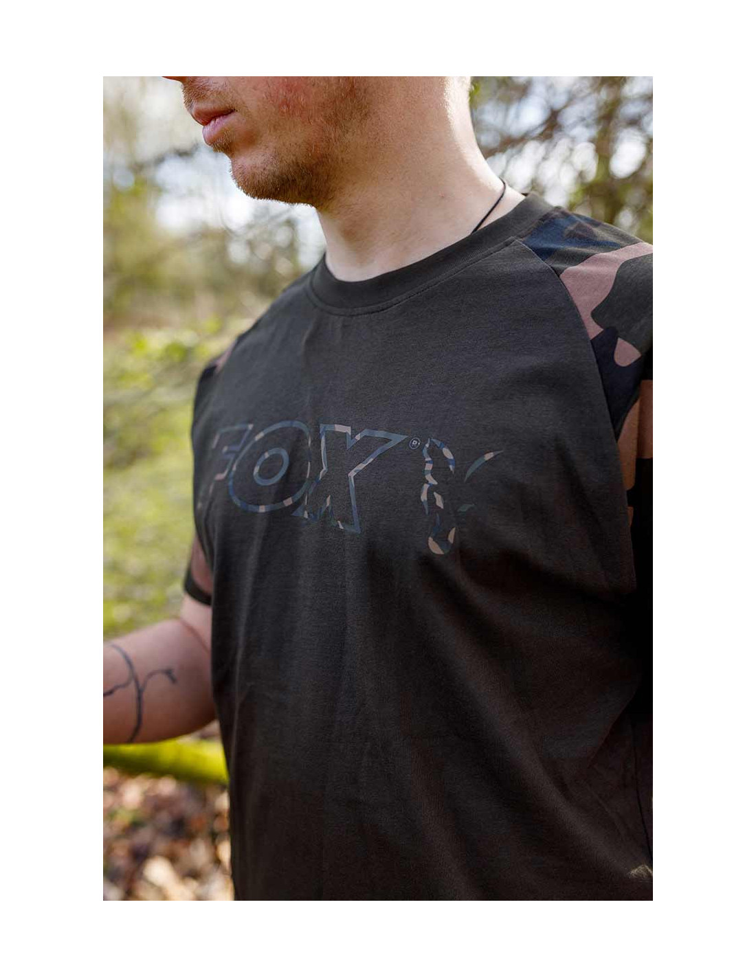 Camiseta caqui con mangas raglán de camuflaje de Fox