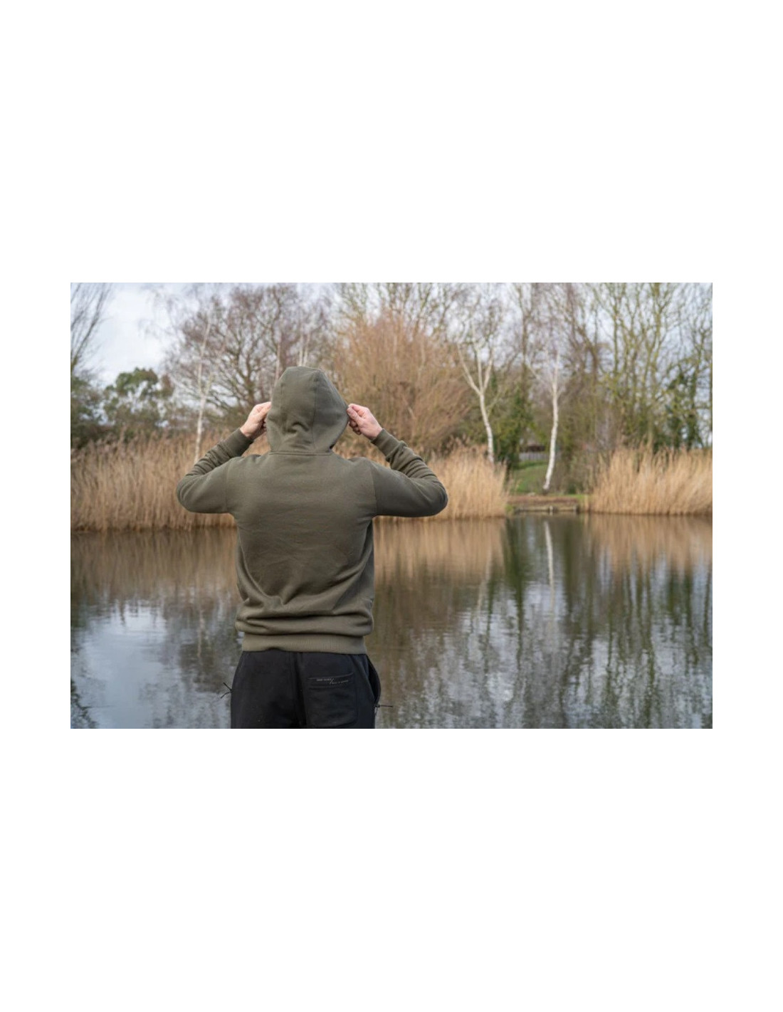 La sólida capucha de construcción de tres paneles tiene un forro más grueso que proporciona aislamiento adicional. Los prácticos bolsillos delanteros de la sudadera, acabados en canalado, ofrecen espacio para pequeños accesorios necesarios en el lugar de pesca.